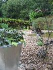 The large patio next to the house has created a family dining area and is surrounded by scented planting. The second patio catches the evening sun, and as the garden matures will become more enclosed and secluded. The quartz paving is laid in bands, thus tricking the eye into appearing larger than it actually is.